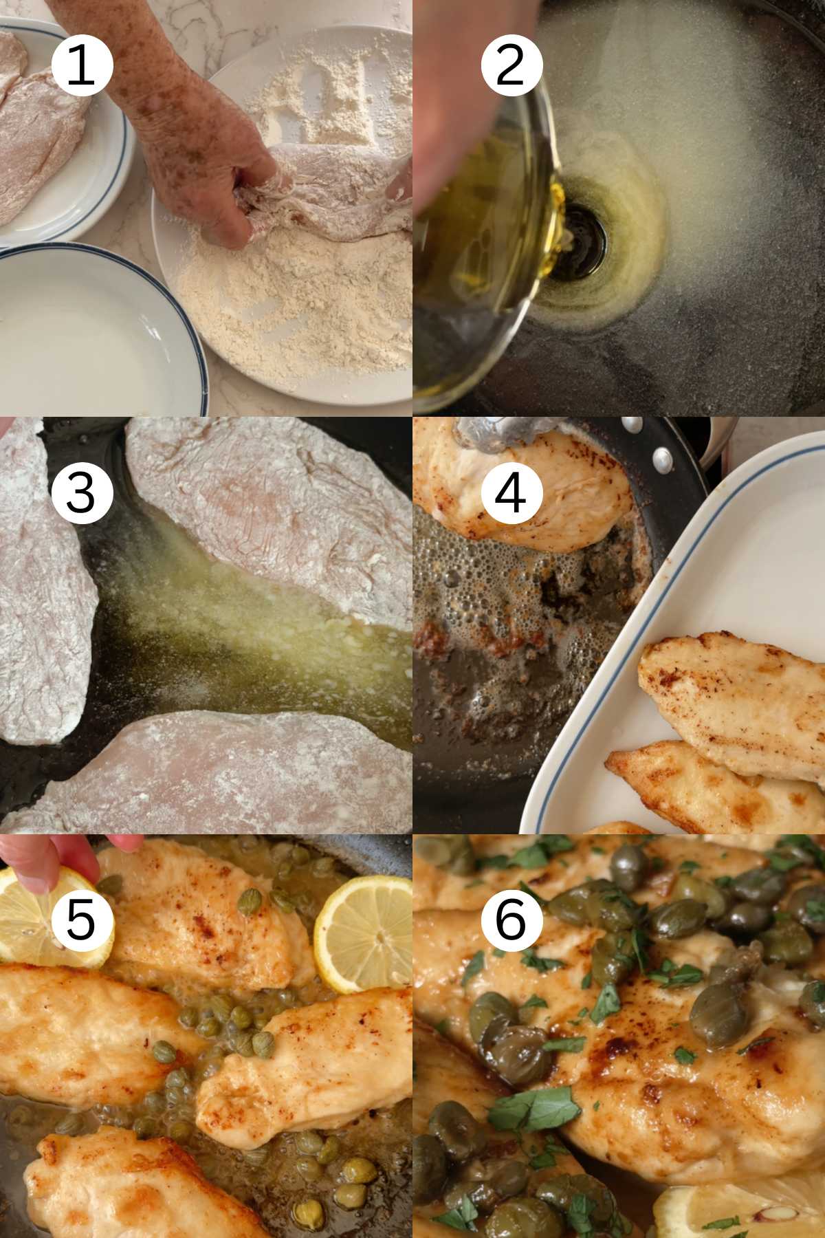 There are two parts to making this recipe- first you cook the chicken and then you prepare the lemon sauce for chicken piccata.