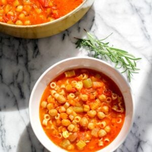 Pasta e Ceci, an Italian Chickpea Soup, is a traditional Roman recipe prepared in a single pot. Featuring a flavorful tomato broth, robust chickpeas, and pasta, this dish epitomizes Italian comfort food and can be served in just 30 minutes!