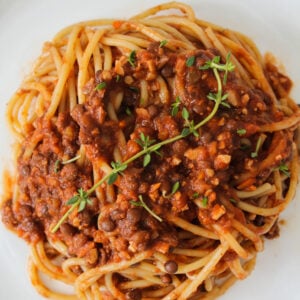 The Easy Lentil Bolognese presents a completely vegan and delectable pasta sauce. Its deep, rich taste is achieved by caramelizing lentils alongside onions, garlic, carrots, celery, and fresh herbs.