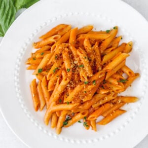 This Vegan Creamy Tomato Pasta offers a completely dairy-free recipe using coconut milk. Its straightforward sauce is whipped up quickly using ingredients from your pantry. Topped with crispy garlic panko, every forkful is delightfully irresistible!