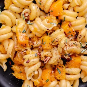 Vegan Butternut Squash Pasta brings the comfort of autumn to your plate! Savor the creamy texture of roasted butternut squash paired with garlic and the crunch of toasted pecans.