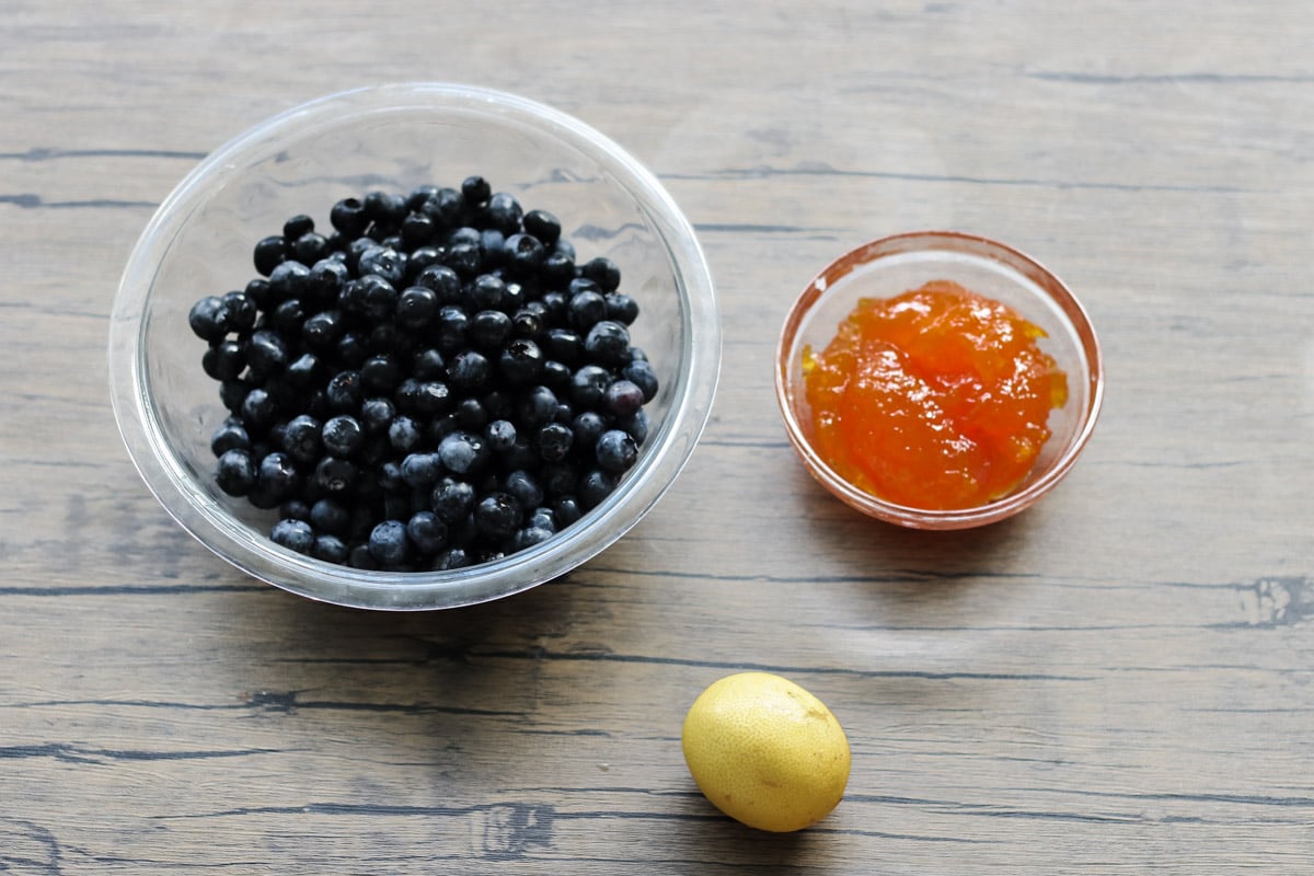- Step 8 For the blueberry topping (optional): In a small saucepan, heat the jam and stir. Remove from the heat. Add in juice of one lemon.