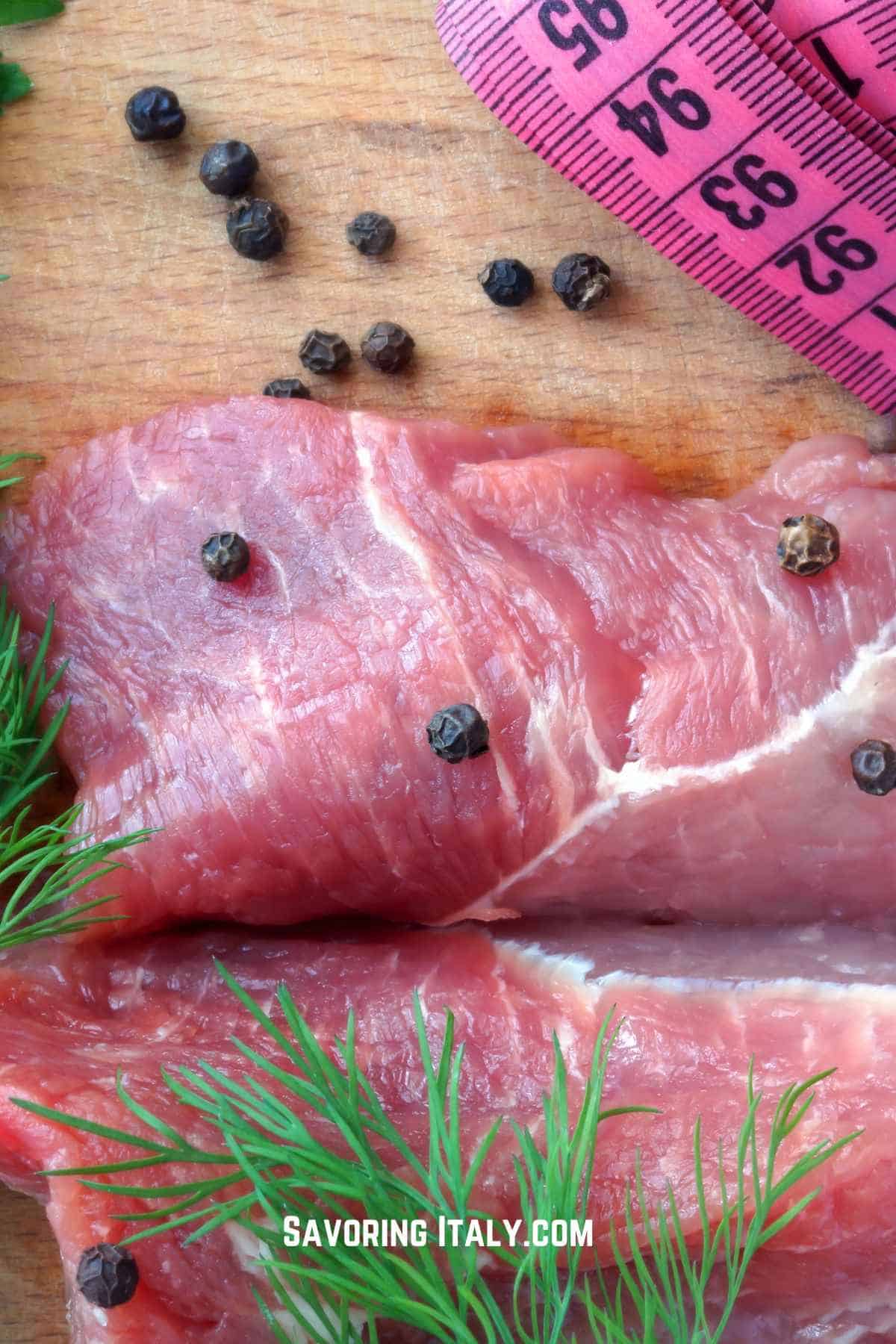Meats: Think grass-fed meats, poultry, turkey, pork tenderloin, chops, steak, veal, bacon, lamb. Seafood's in too - shrimp, lobster, plus wild stuff like bison, venison.