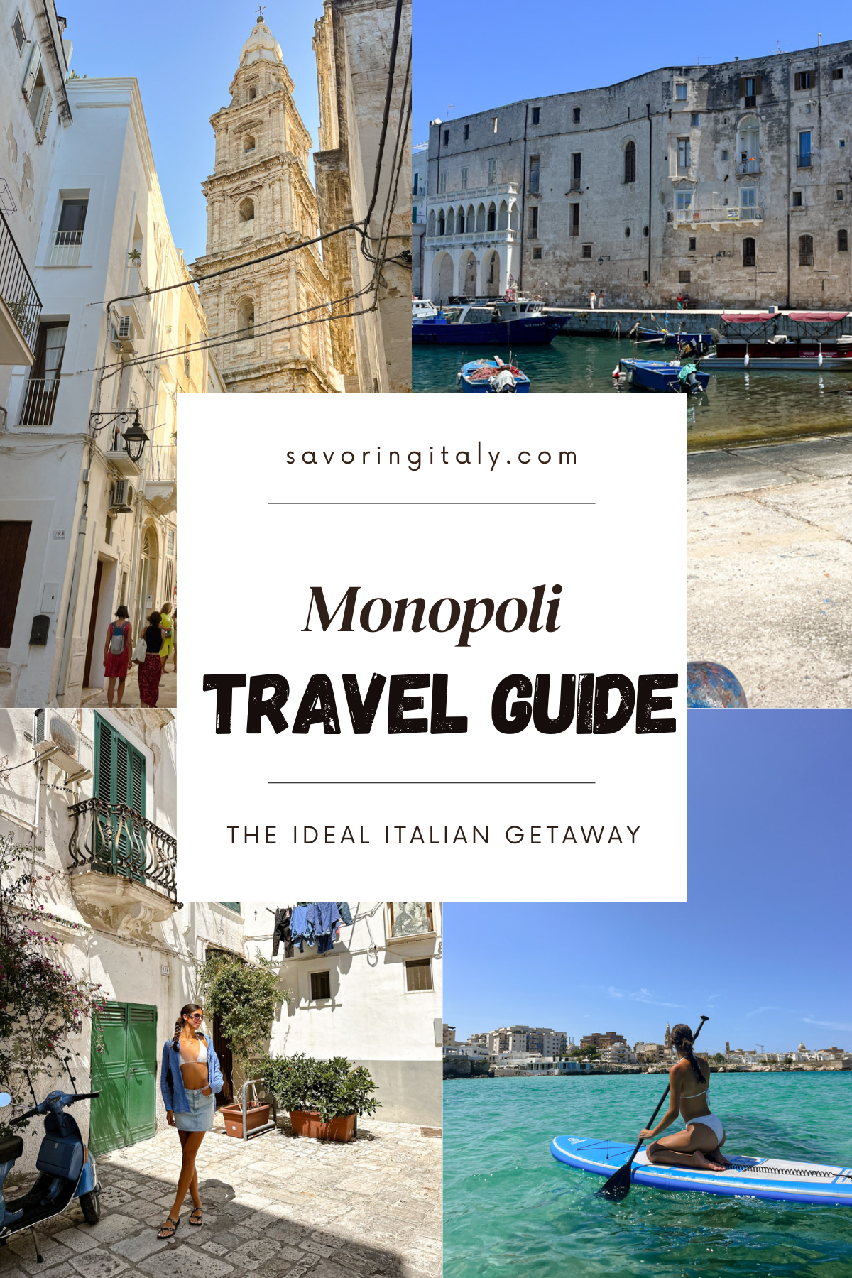 Monopoli is a cute coastal town in southern Italy, around 40 kilometers southeast of Bari. It's right by the Adriatic Sea.