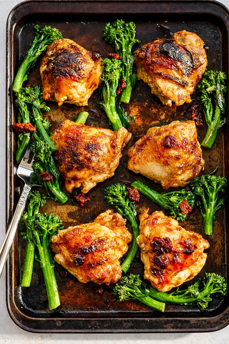 Honey Balsamic Chicken Thighs with Broccolini (Sheet Pan)