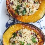 Stuffed Acorn Squash with Quinoa, Dried Cranberries, and Pinoli